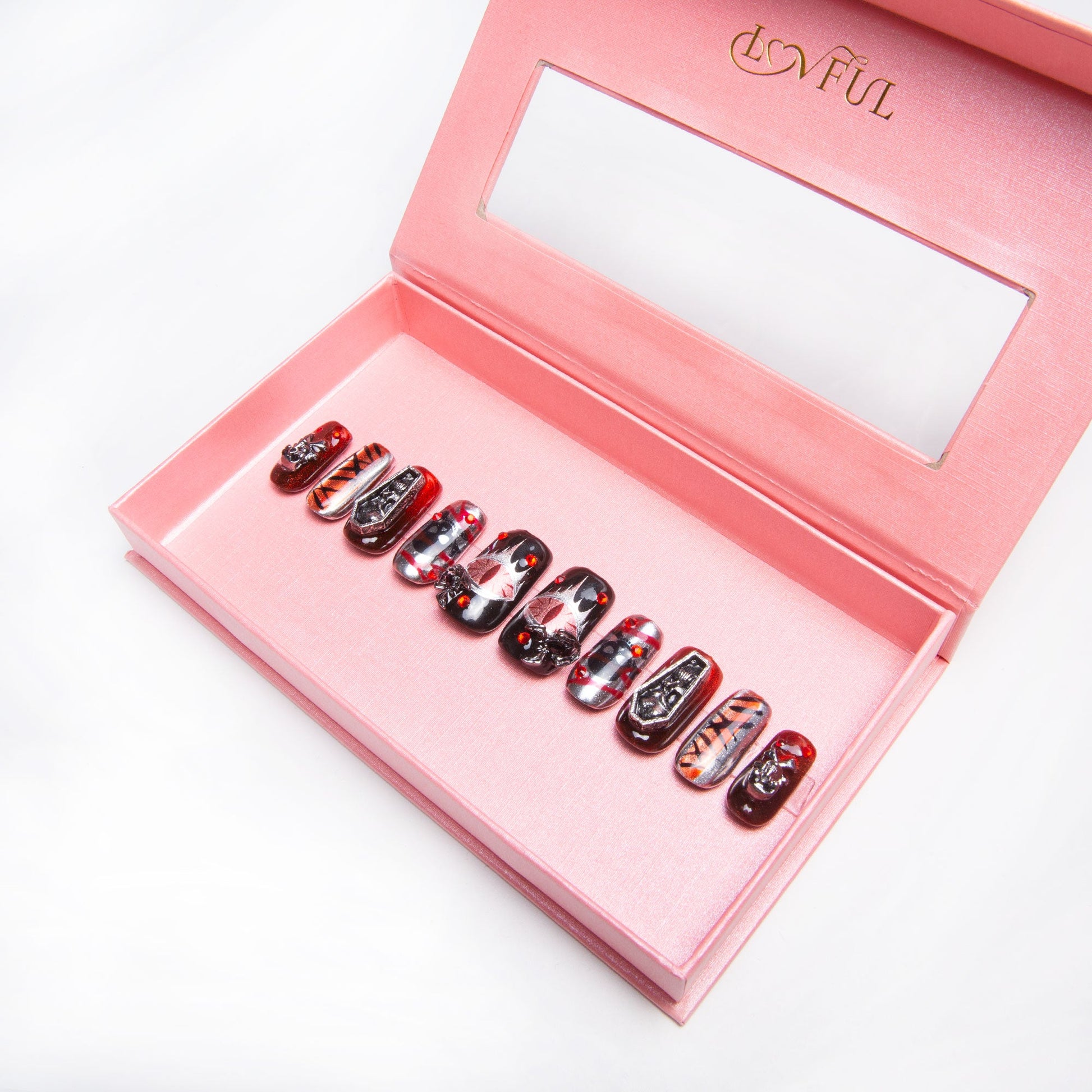 Step into the eerie world of "Bloody Scary Farm," a Lovful press-on nail set that captures the chilling essence of Halloween. With deep red and silver hues, these nails are adorned with haunting skeletons and ominous coffins, creating a gothic vibe perfect for the spookiest time of the year. The blood effect adds a macabre touch, evoking the unsettling tale of a haunted farm where dark secrets linger. Whether you're attending a Halloween party or embracing the spirit of the season, this set is your perfect accessory for a night of frightful fun. P.S. Don't forget, you??£¤ll get one free sticker!