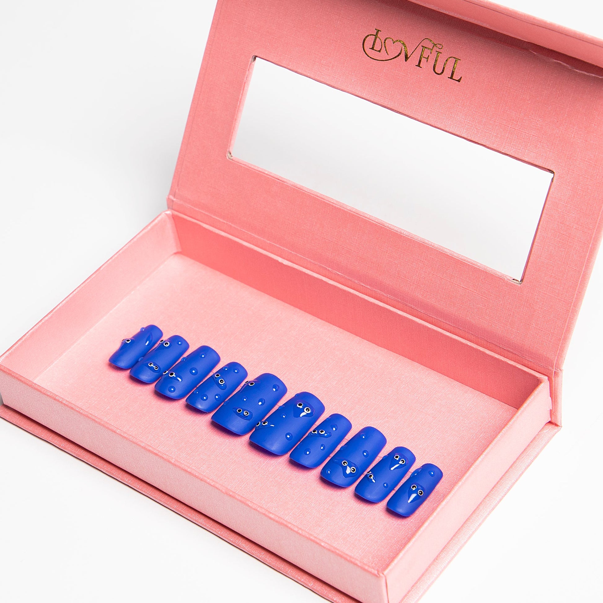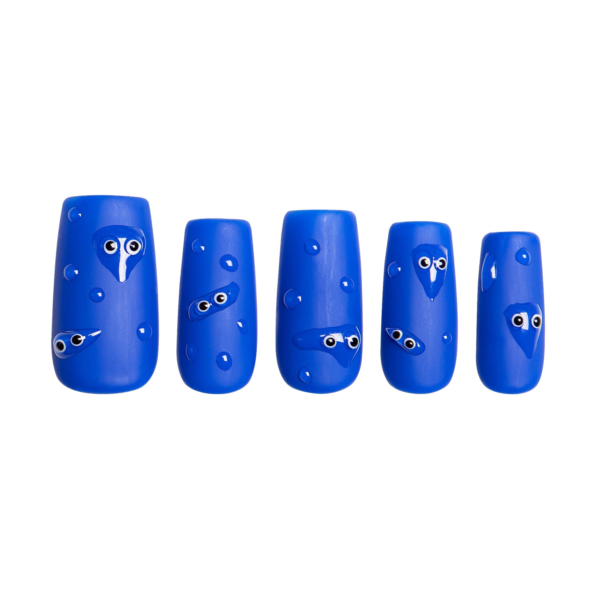 "Dancing Rain" is a delightful design that brings a touch of whimsical charm to your fingertips. These deep blue nails are adorned with enchanting little raindrops, each featuring cute, tiny eyes that resemble playful elves dancing in the rain. Perfect for adding a dash of fun and creativity to your look, "Dancing Rain" nails capture the magic and joy of a rainy day, making your manicure a captivating conversation starter. Enjoy the ease of application and the stunning, unique design that only Lovful can deliver.