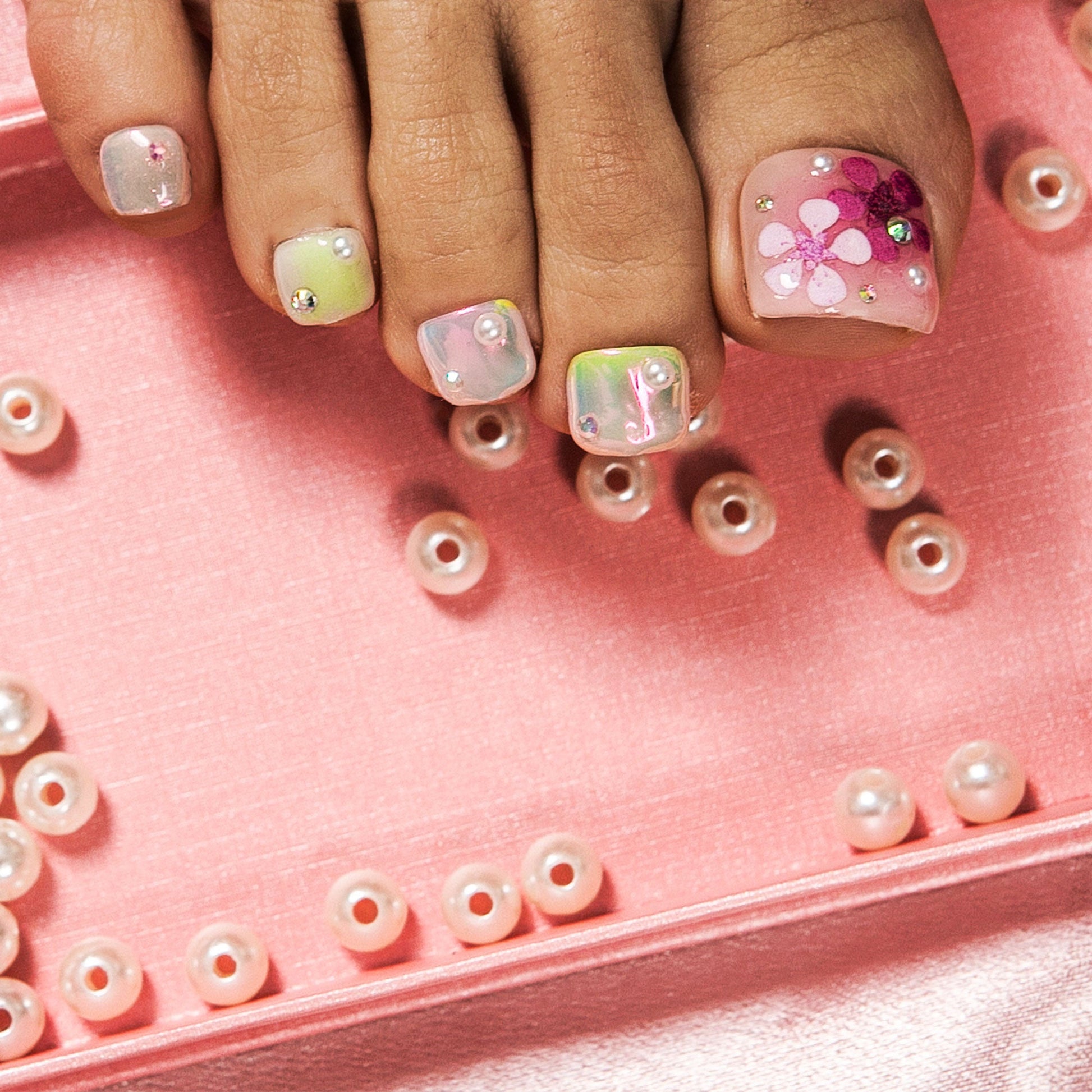 A dreamy, translucent set adorned with delicate pastel floral accents and iridescent details.?