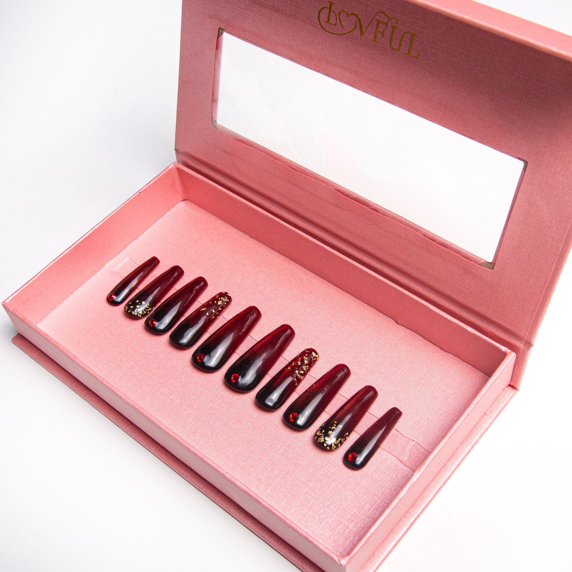 Perfect for a night out at the jazzy pub, these nails evoke the ambiance of dimly lit corners and whispered secrets, as you sip on your favorite cocktail and sway to the rhythm of live music. Picture yourself amidst the bustling energy of the crowd, your fingertips adorned with the mesmerizing gradient of black and red, capturing the essence of the night's intoxicating allure. With each toast and laughter-filled conversation, let these nails become a symbol of your undeniable charm and magnetic presence in the heart of the evening's festivities.