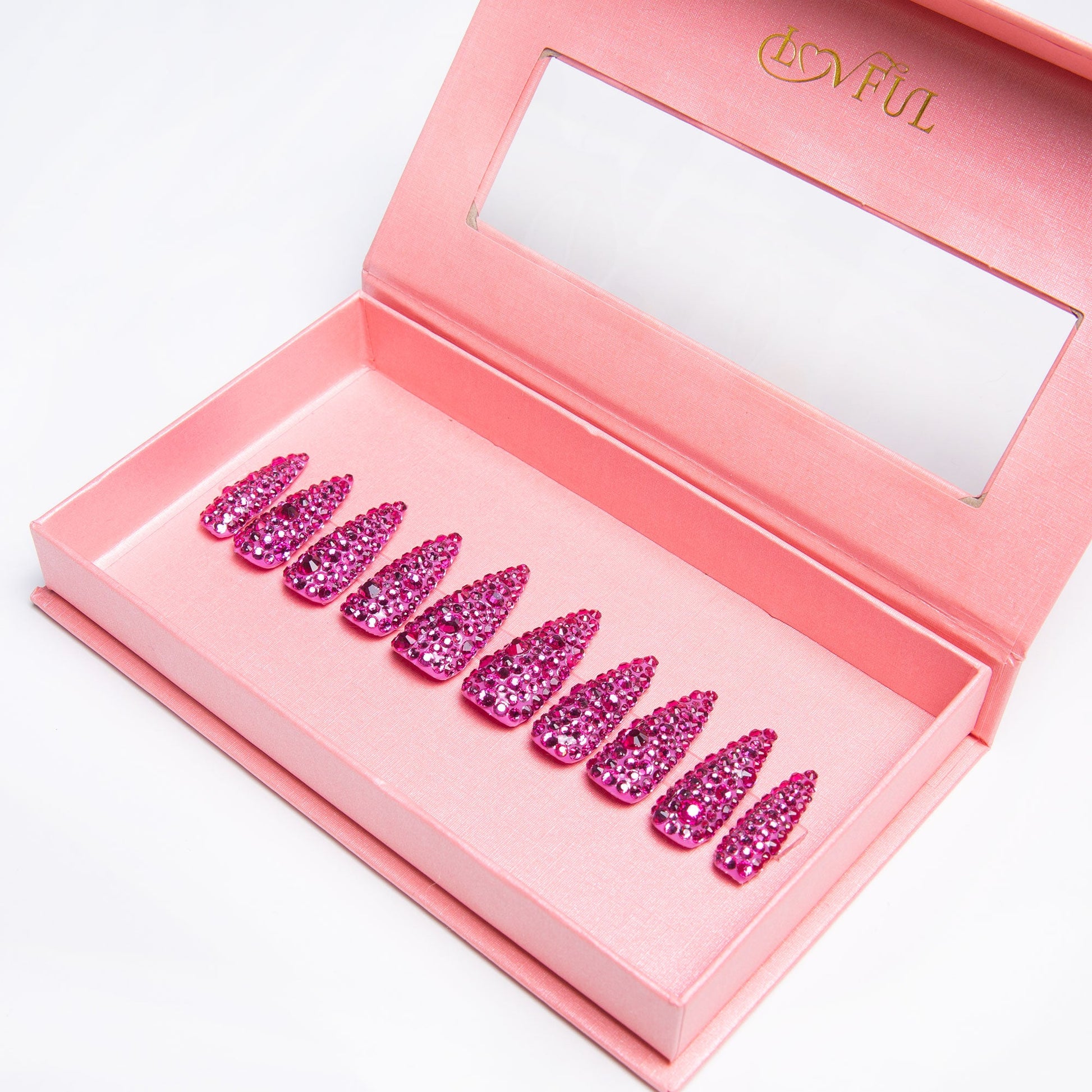 Introducing "Classic Pink Rhinestone" Press-On Nails, the epitome of Barbie-inspired glamour and sparkling sophistication. With a full coverage of dazzling pink rhinestones, each nail is a dazzling display of opulence fit for a modern-day princess. Perfect for a glamorous girls' night out where you're channeling your inner Barbie and ready to paint the town pink, or for a playful photoshoot where every pose is a celebration of fun and femininity. Let "Classic Pink Rhinestone" nails be your signature accessory, adding a touch of sparkle and shine to any occasion where you're ready to shine like the star you are.