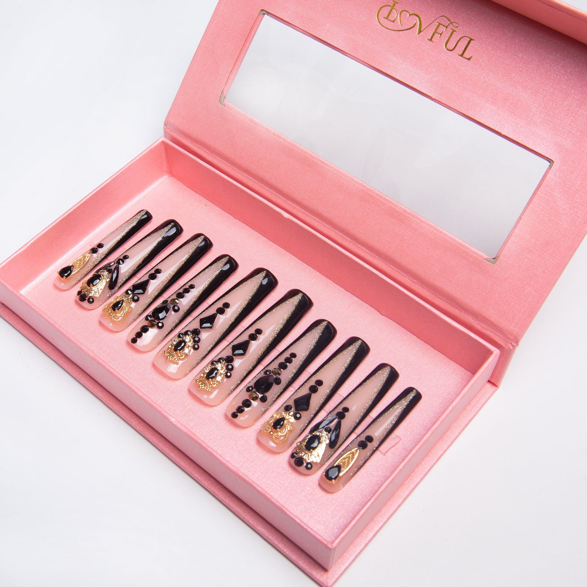 Combining of obsidian and classic black French tip design, Lovful's Obsidian Palace brings you into the palace of timeless elegance. Tick tock, tick tock, the midnight awaits.