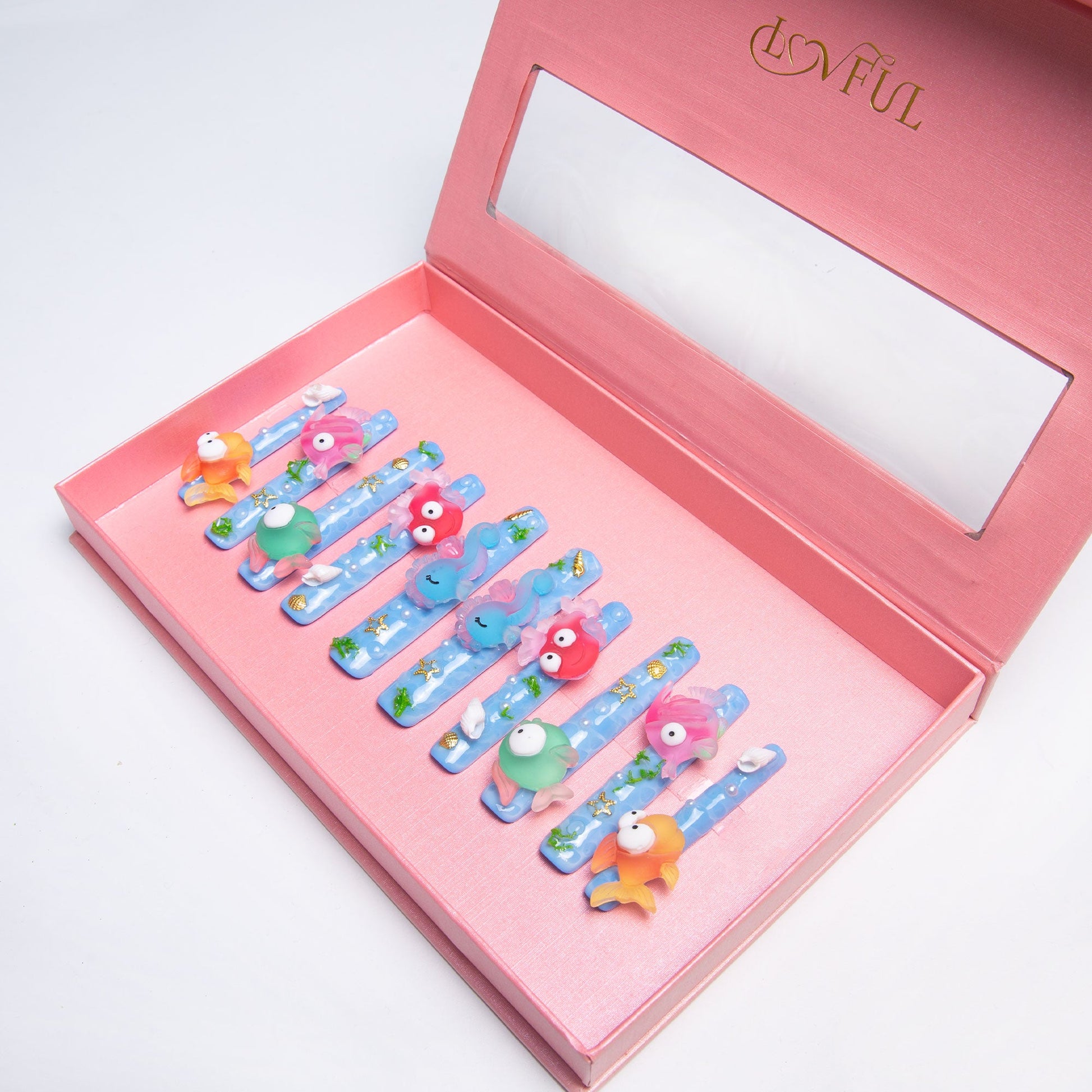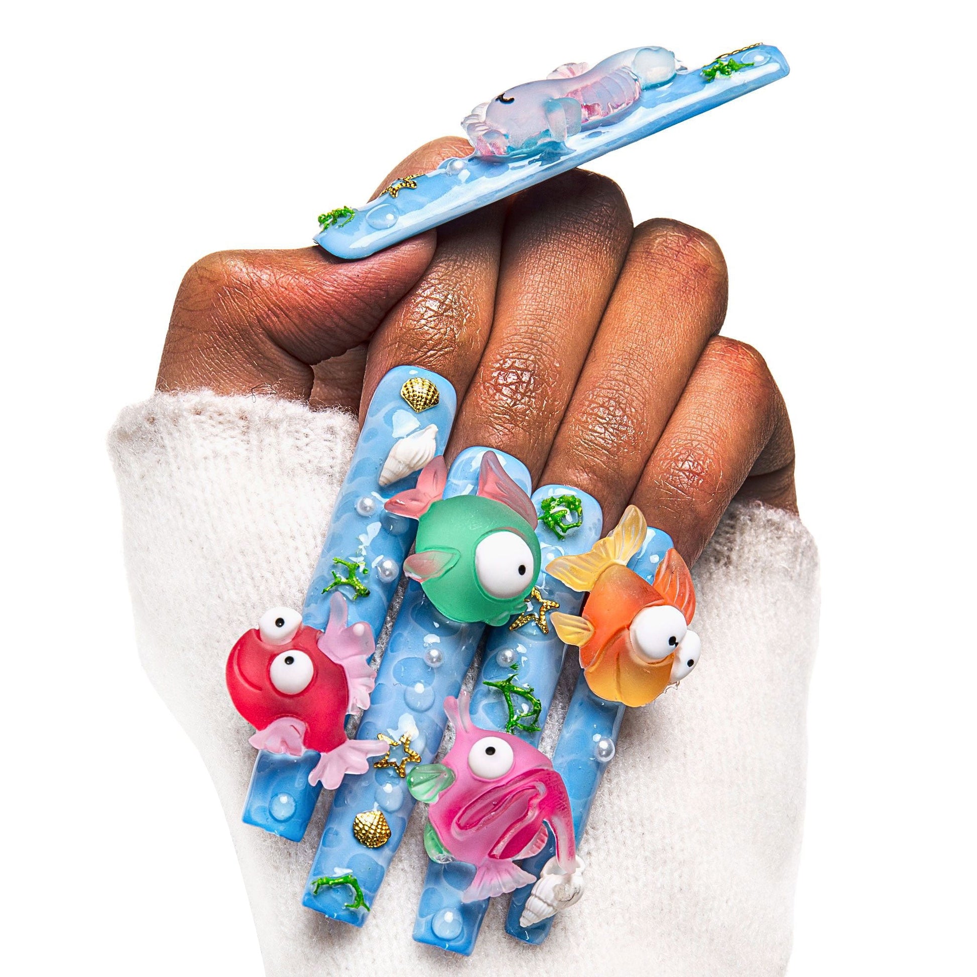 Dive into a whimsical underwater adventure with our "Sea World" press-on nail, a charming addition to your nail art repertoire. Featuring a mesmerizing blue sea-like base adorned with an array of delightful fish decorations, each nail exudes an irresistible cuteness that is sure to capture hearts. Perfect for a beach-themed birthday bash, a tropical getaway, or simply when you're in the mood to add a touch of aquatic charm to your everyday look, these nails are the epitome of playful sophistication. Let your nails become a vibrant aquarium of style and make a splash wherever you go with the adorable "Sea World" press-on nails.
