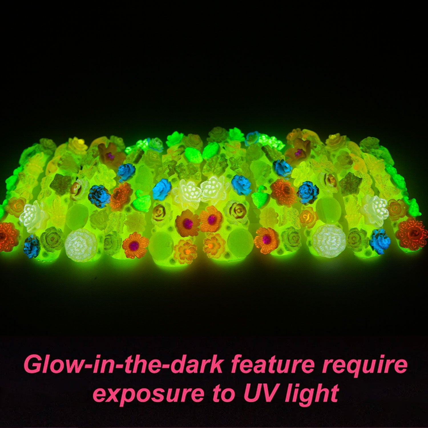 "Green Glow Magic" press on nails features a full-coverage design that resembles the mesmerizing depths of the world of deep sea, complete with swirling currents and vibrant marine hues. Crafted from glow-in-the-dark materials, they come alive with an otherworldly luminosity after dark, casting an enchanting aura reminiscent of bioluminescent creatures. Perfect for those who seek a touch of mystique and wonder, Green Glow Magic nails promise to transport you to a realm of mesmerizing beauty, where every night becomes a magical adventure.Make sure it got exposed under UV to shine in the dark.