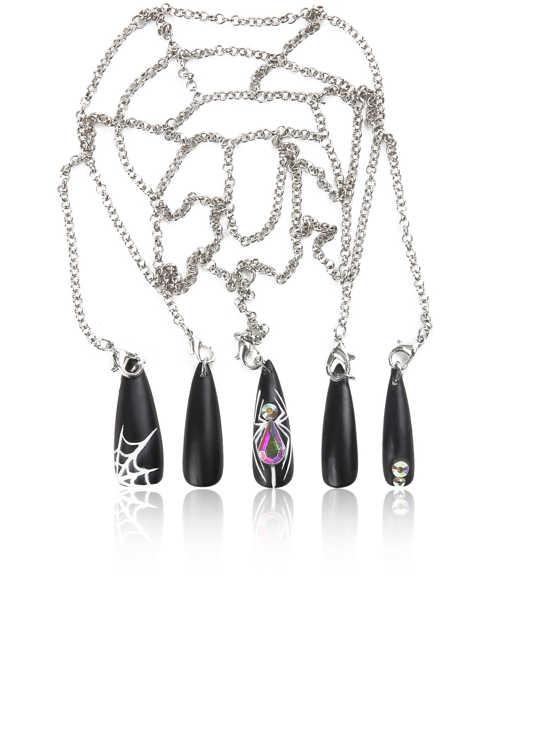 Introducing "Itsy Bitsy Spider," where elegance intertwines with edginess in a captivating web of style. Each press-on nail features a daring spider web-like design created with delicate metal chains hanging from the fingertips, evoking a sense of mystery and allure. Unique and versatile, these nails offer the option to remove the metal chains for a clean black look, adding a touch of adaptability to your style. Perfect for a Halloween soir¨¦e, a themed costume party, or any occasion where you want to make a bold statement with your fingertips, "Itsy Bitsy Spider" nails are the epitome of daring sophistication. Let your fingertips weave tales of intrigue and enchantment as you embrace the dark side of fashion with "Itsy Bitsy Spider" press-on nails, leaving a lasting impression wherever you go.