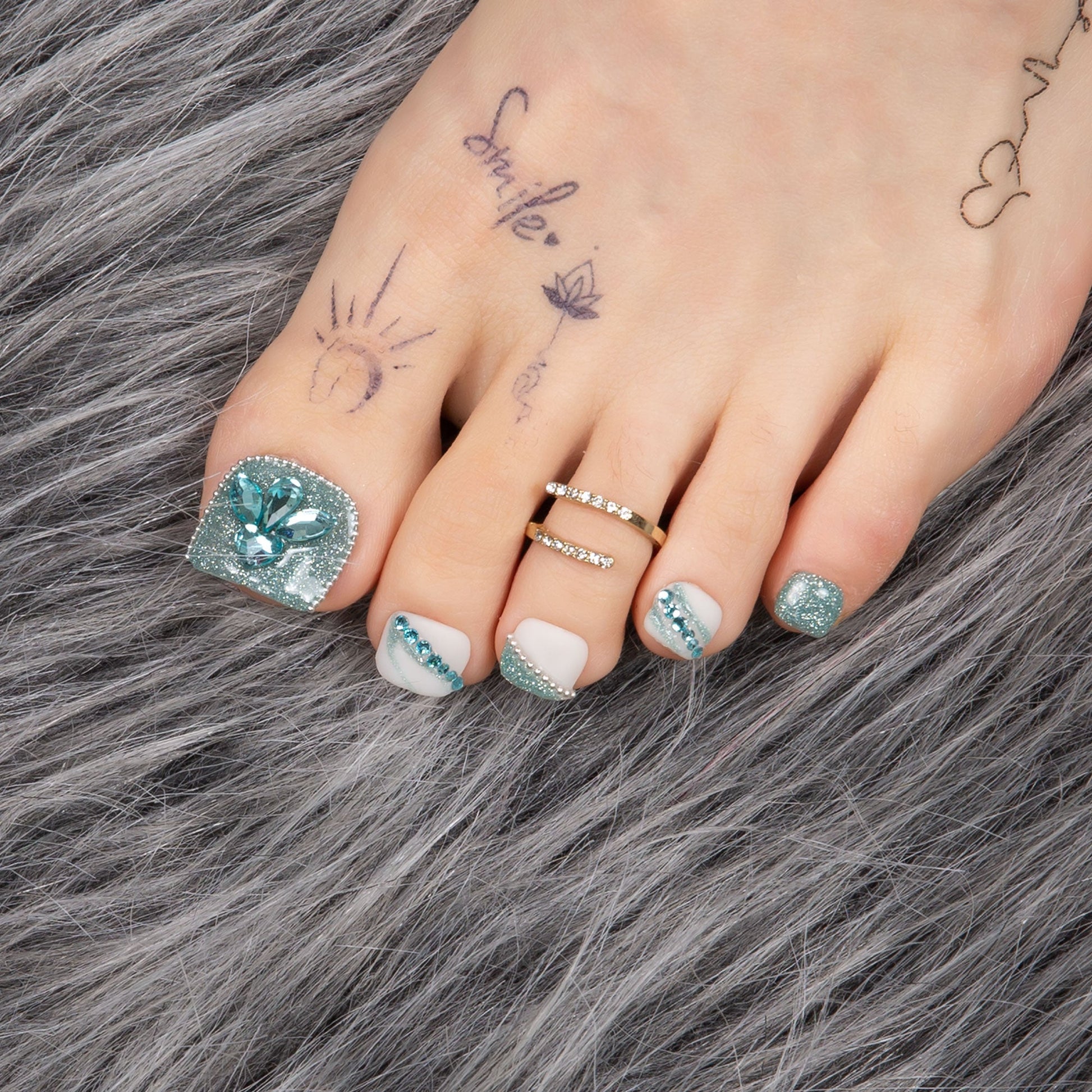 Introducing "Breakfast at Lovful" - a mesmerizing blend of elegance and serenity. This press-on nail set features a sophisticated palette of teal blue and Tiffany blue, reminiscent of a tranquil morning sky. Each nail is adorned with delicate blue rhinestones that catch the light like morning dew, and hand-drawn water lines that flow with grace and poise. Perfect for those who appreciate the finer things in life, this set exudes a timeless charm, making every moment feel like a luxurious escape.