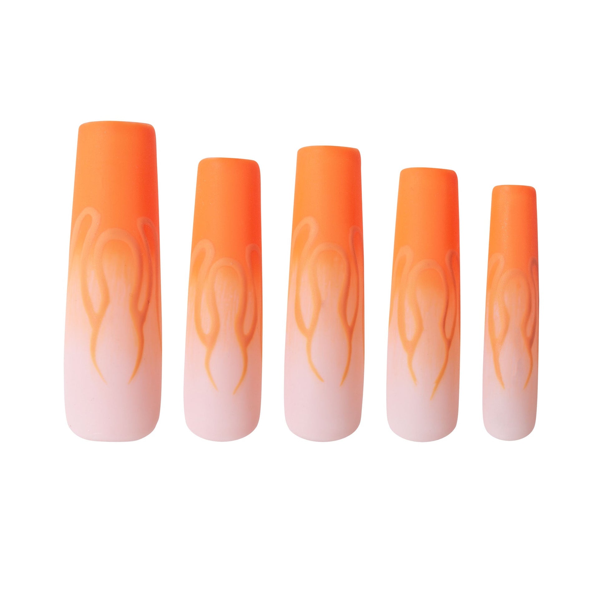 Set your nails ablaze with the bold and electrifying Burning Desire, the perfect set for anyone who loves a fiery, bold look! Featuring a smooth nude-to-orange ombr¡§| base with soft flame details, these nails bring the perfect balance of spice?and style. The matte finish keeps it effortlessly?cool while the vibrant orange flames add a touch?of drama. Whether you?¡¥re feeling fierce, flirty, or?just want to add some heat to your vibe, these?nails will have you glowing like a sunset.