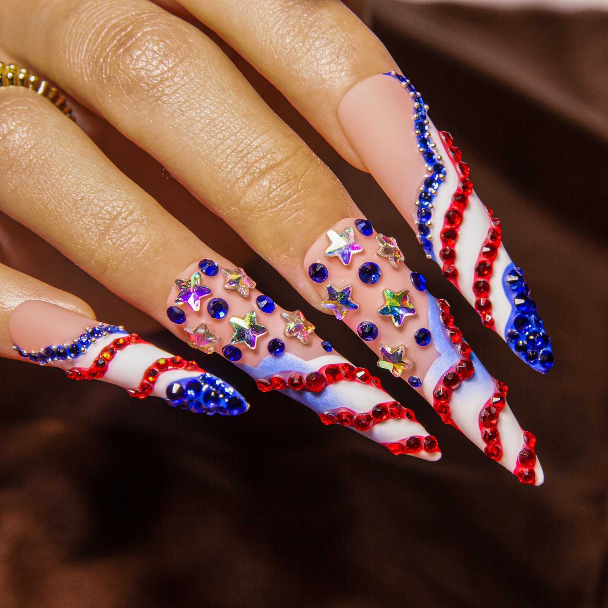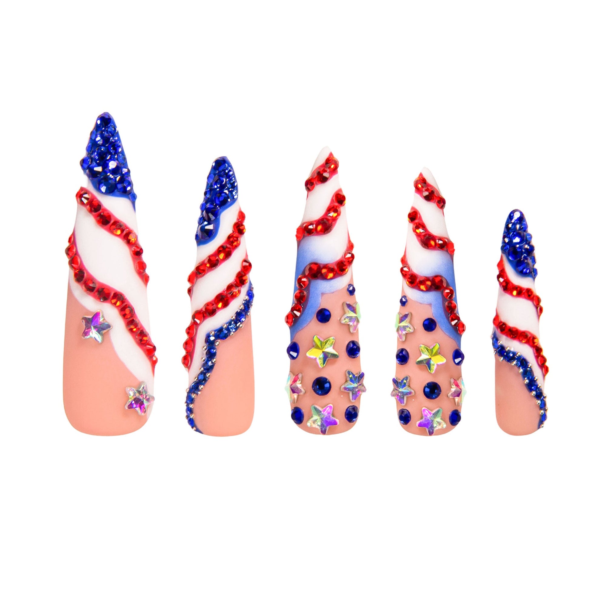 Glazed for Glory is the soft-glam set with a wholelot of star power. Featuring a glossy nude base,tie-dye flag accents, and shiny red florals that poplike sparklers at sunset, this look ¡° gives minimaleffort, maximum attention¡±. Whether you¡¯resipping iced drinks or lighting up the group chatfrom the picnic table, your nails are doing all thetalking and they¡¯re fluent in fierce.