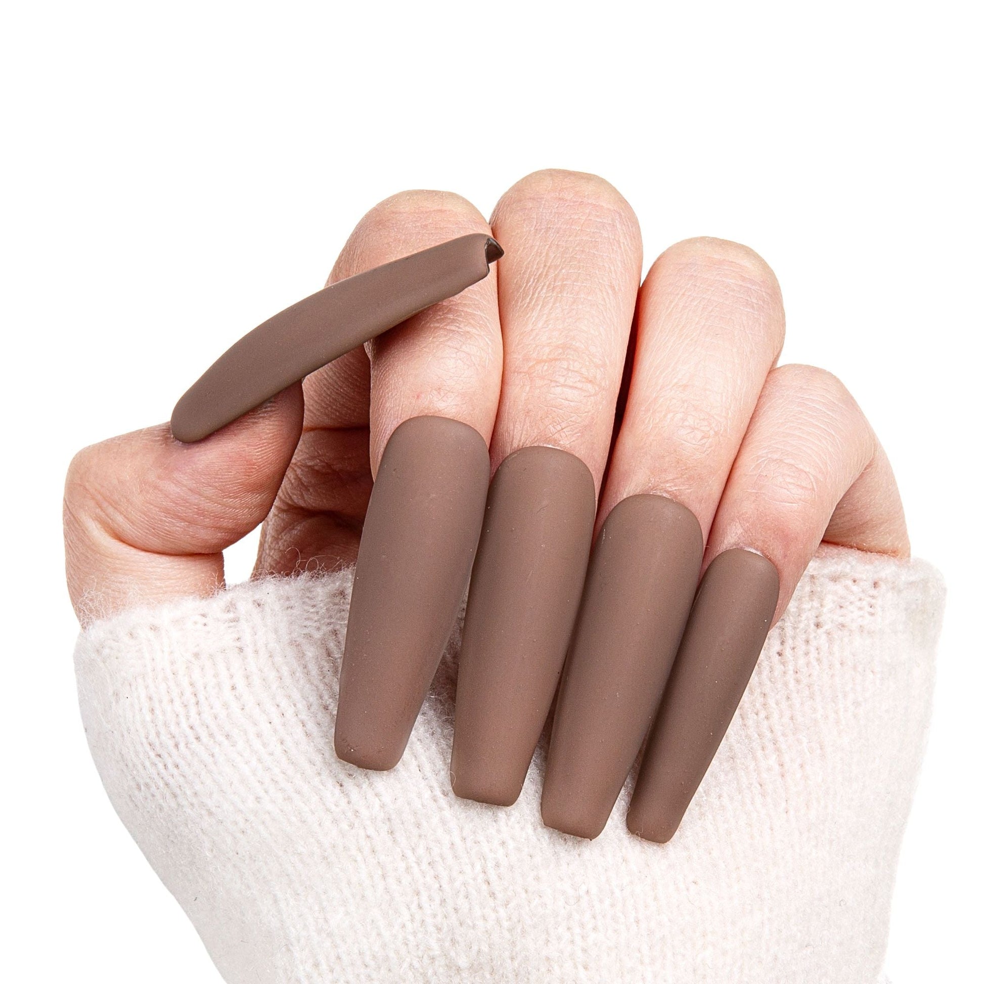 Inspired by the rich tones of a perfectly brewed americano with a hint of milk, these nails exude warmth and sophistication. With a velvety matte finish in a deep coffee hue, they offer a modern twist on classic elegance. Crafted to be thick and sturdy, Caf¨¦ Chic Matte nails provide both durability and style, ensuring your manicure stands the test of time. Whether you're savoring your morning coffee or making a statement at a soir¨¦e, these nails are the perfect accessory for any occasion.
