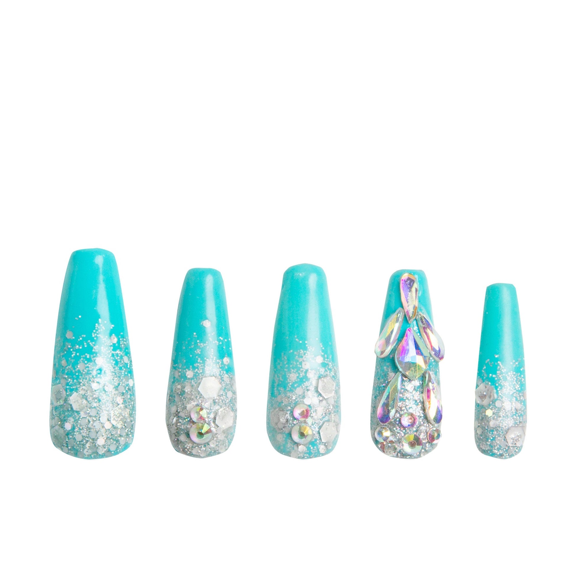 Step into the spotlight with our Clubbing Cinderella nails! With a captivating light blue hue fit for a modern-day princess, these press-on nails feature a special glow-in-the-dark feature that's sure to dazzle on the dance floor. Simply expose them under UV light for a mesmerizing effect that will have all eyes on you. Perfect for a night of dancing and fun, let your nails light up the night with Clubbing Cinderella!