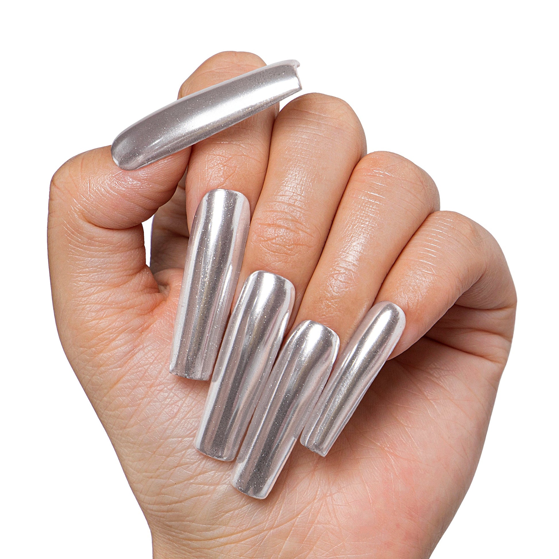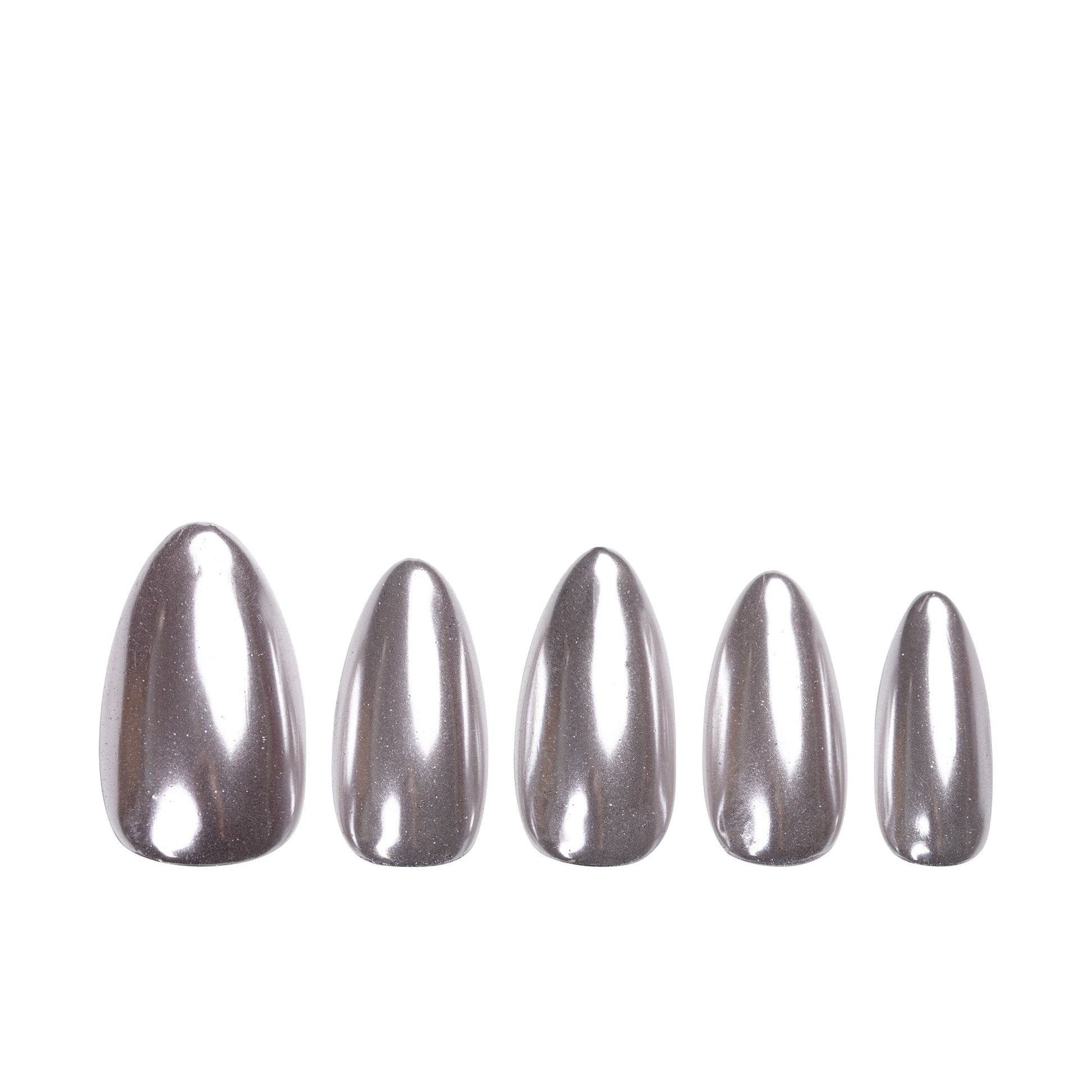 Step into the future with Galactic Silver, a molten?silver chrome that reflects confidence,
