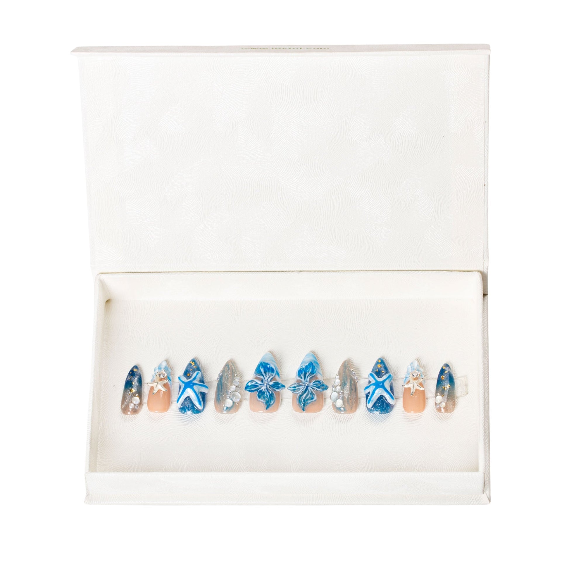 Let the tides of serenity wash over you with Ocean Lullaby. Deep sapphire blues, soft sandy neutrals, and delicate seashell details harmonize in a melody of calm beauty. It¡¯s as if the sea whispered its secrets and left them on your fingertips ¡ª perfect for anyone who carries the ocean in their soul.